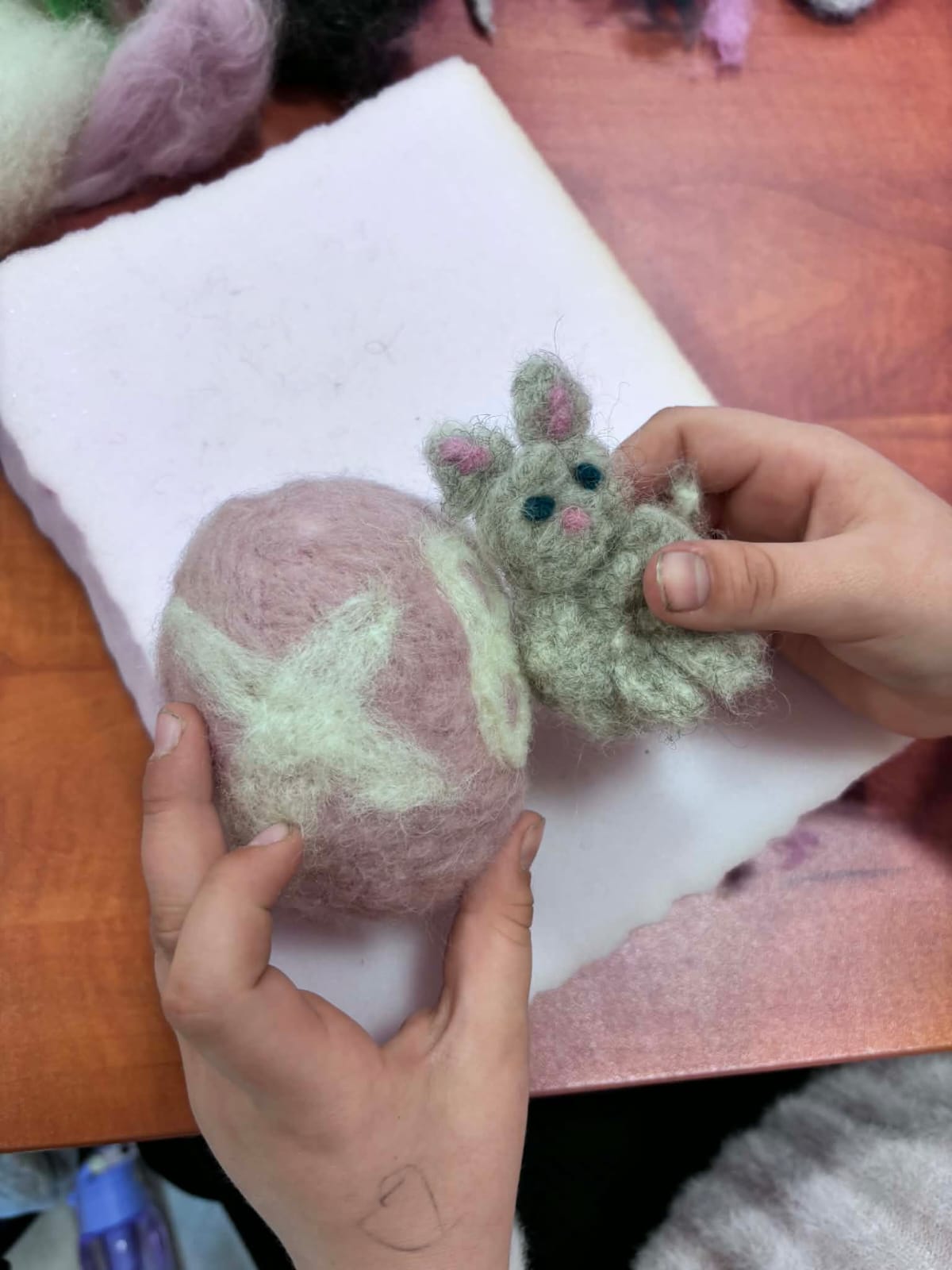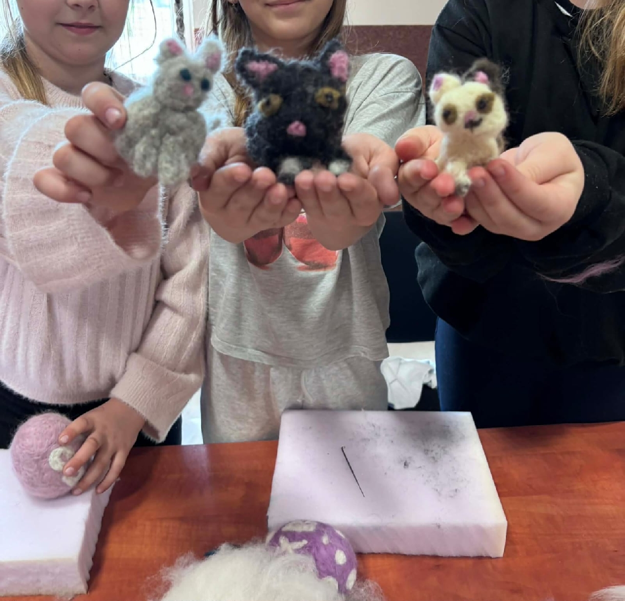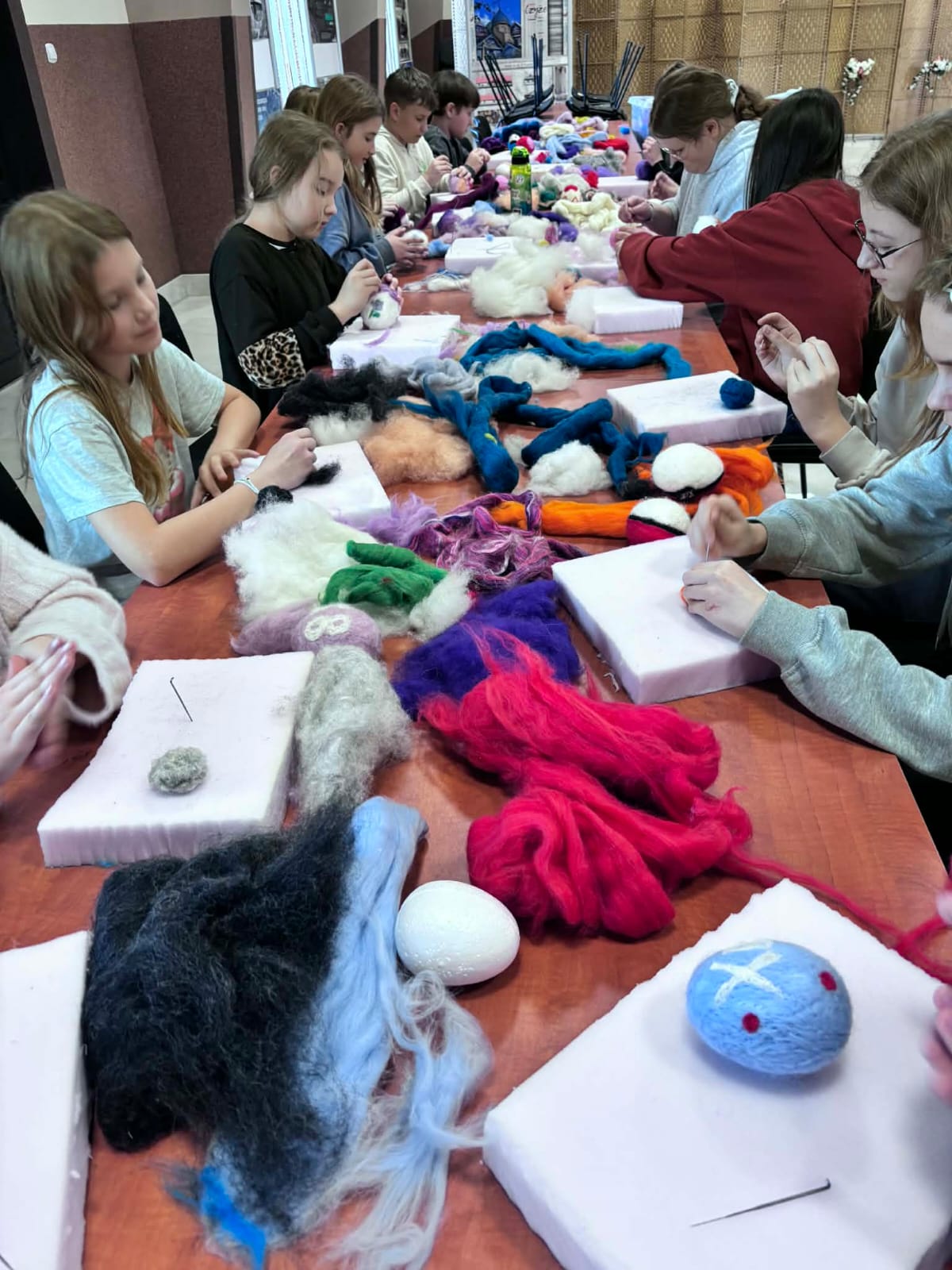 Wielkanocne warsztaty filcowania w Gminnym Ośrodku Kultury dla uczniów Szkoły Podstawowej im. Wiktora Szweda w Czyżach.