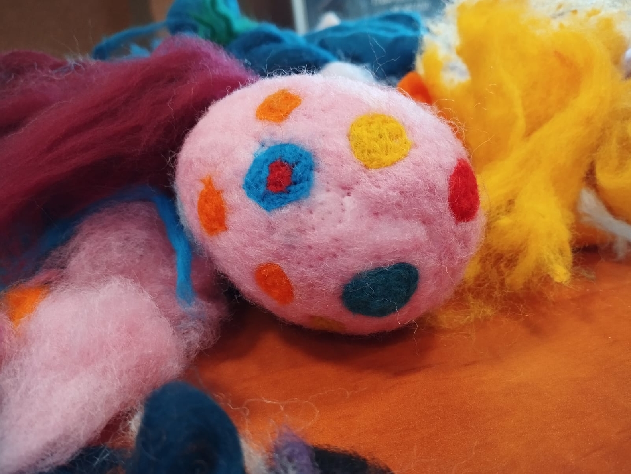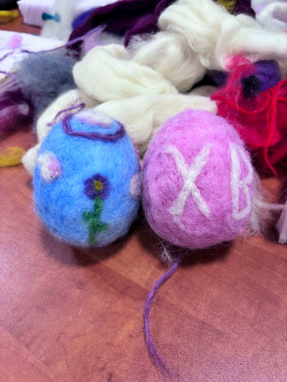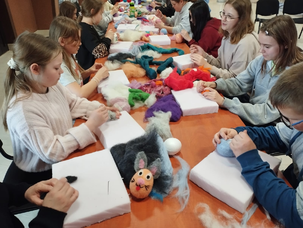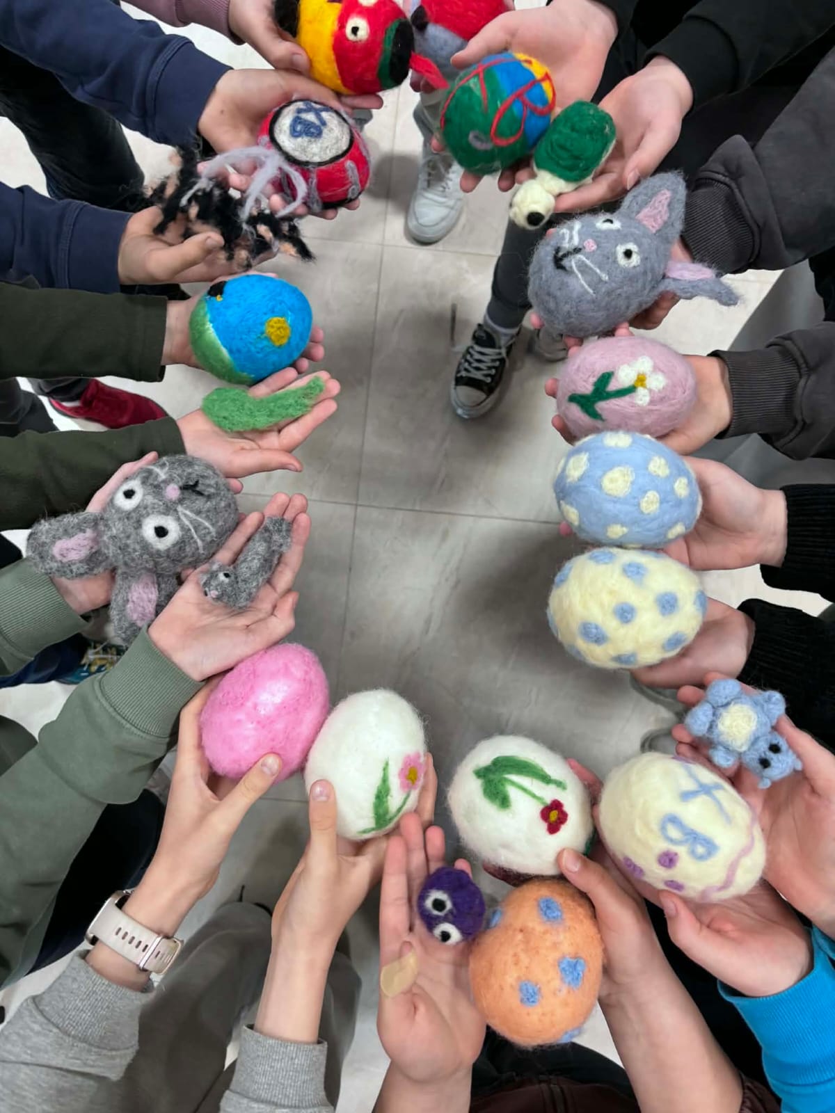 Wielkanocne warsztaty filcowania w Gminnym Ośrodku Kultury dla uczniów Szkoły Podstawowej im. Wiktora Szweda w Czyżach.